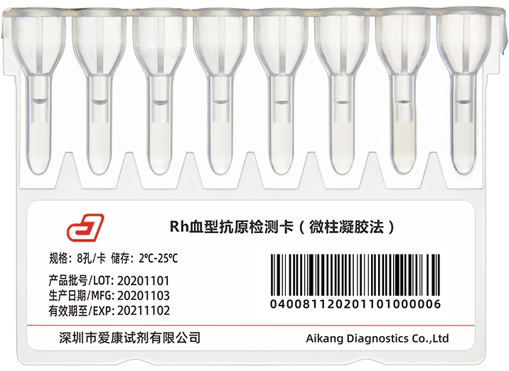 采用微柱凝胶技术,8孔卡设计,用于Rh血型系统的C、c、E、e抗原的检测